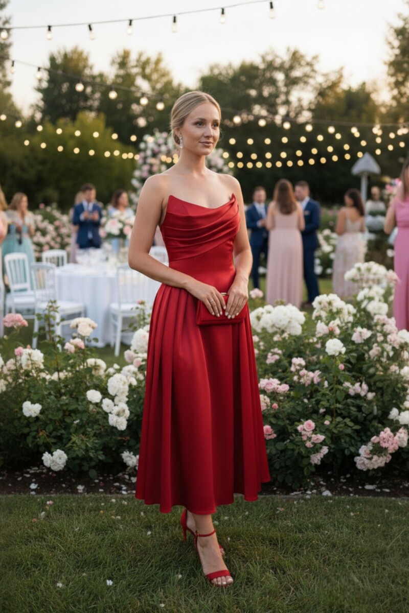 This is an ideal choice for evening dresses: red will emphasize boldness, add luxury to your look, and make you the center of attention.