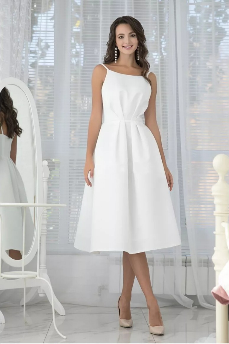 Нарядное короткое платье Лекси с пышной юбочкой из благородного свадебного атласа. Лиф офо..