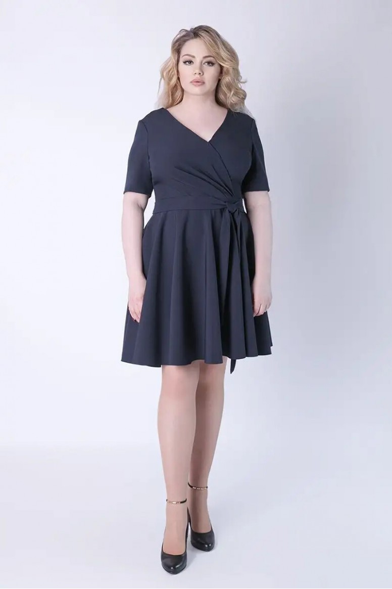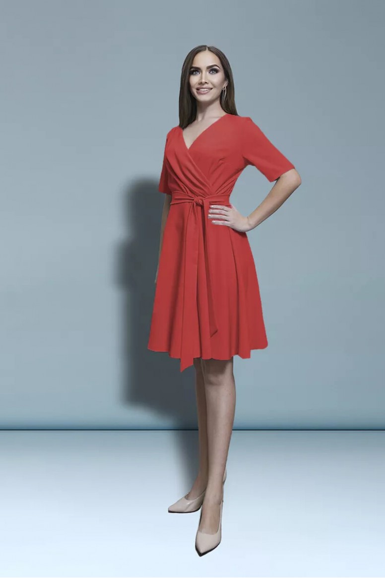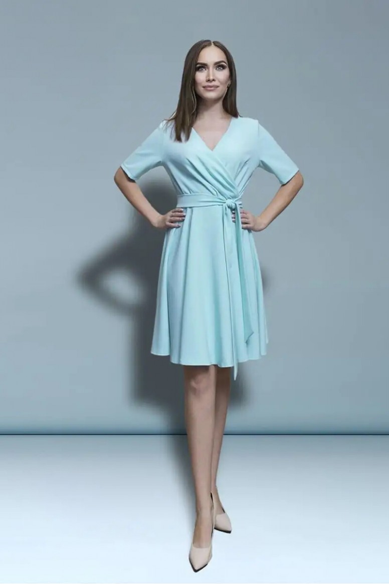 Платье, которое создает настроение. Отрезное по талии, с юбкой солнце клеш. В нем хочется кружиться в радостном танце. V-образный вырез с запахом верхней части платья зрительно удлиняет шею. Прямой втачной рукав заставляет рассмотреть красоту запястий. Съёмный пояс завязывается в небольшой бант или узел на поясе, делая акцент на талии.