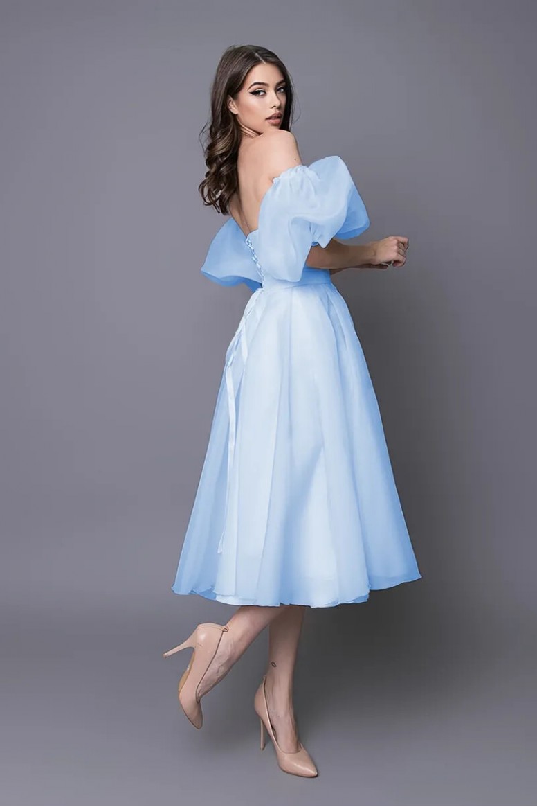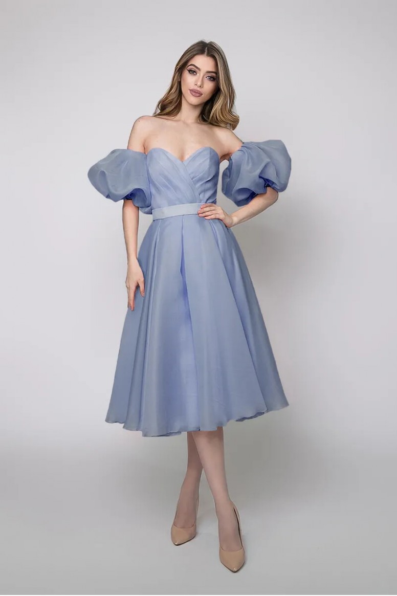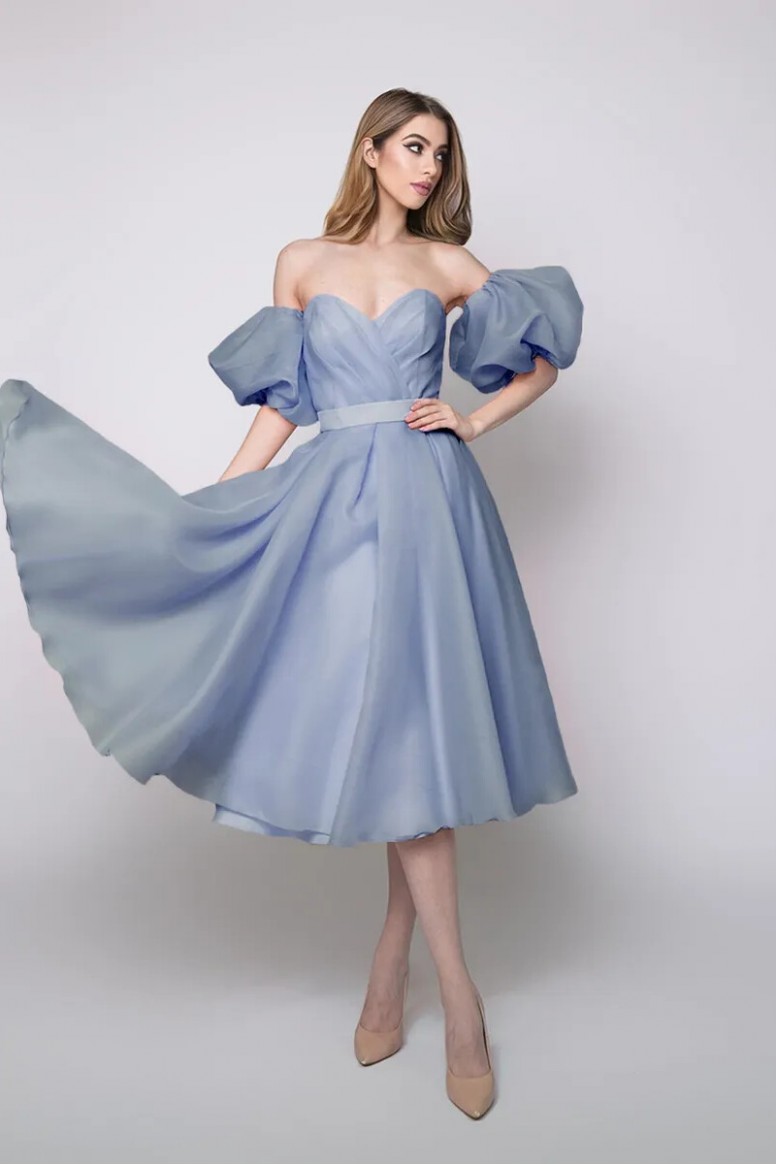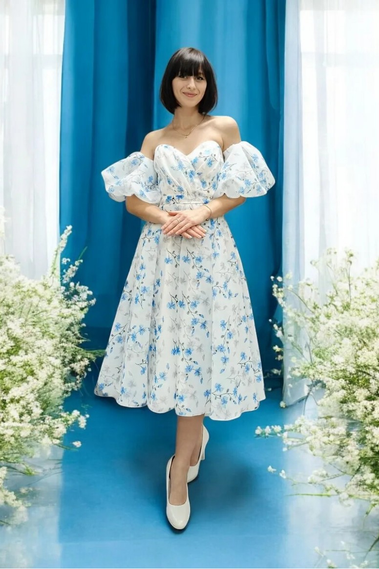 В очаровательном платье Элина с пышной юбочкой ниже колена, съемными рукавами-фонариками и..