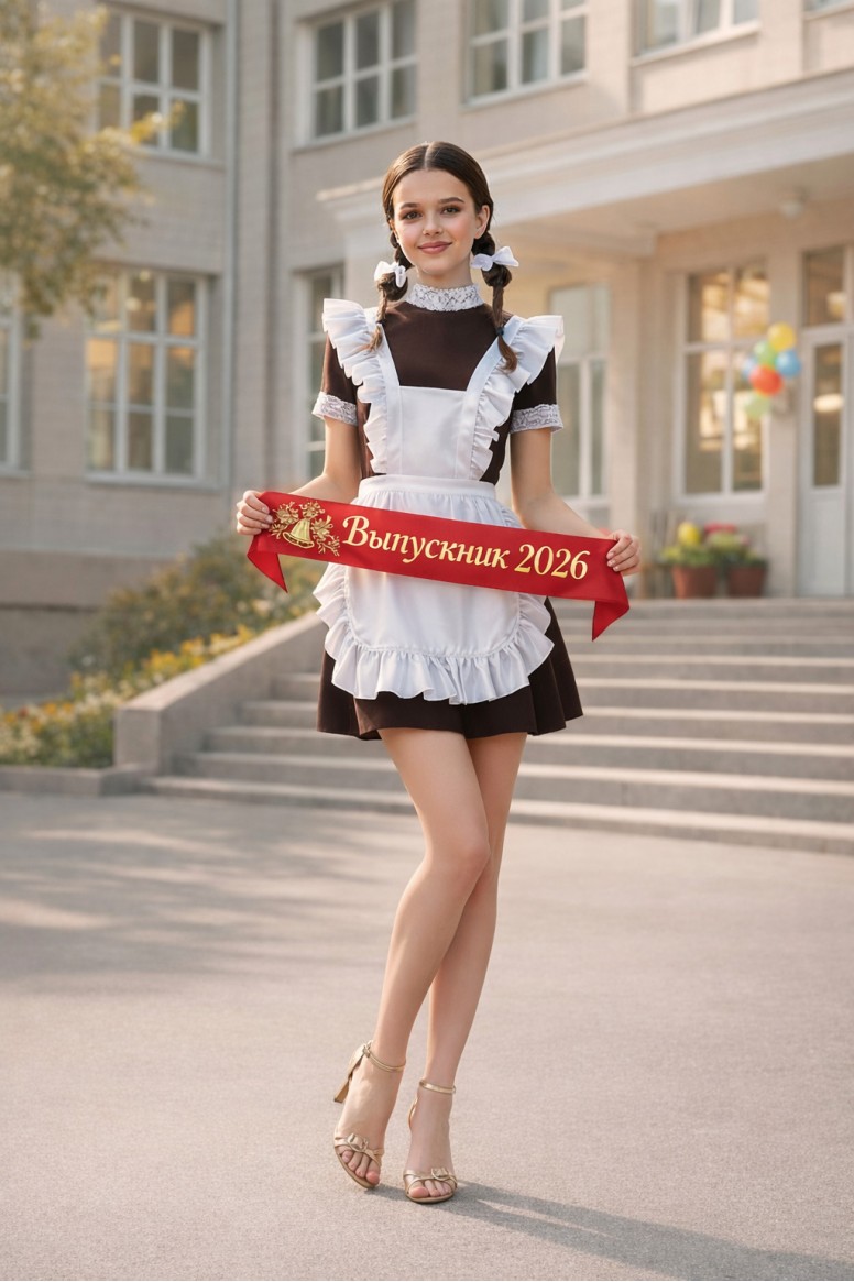 Белый гипюровый фартук в комплекте с коричневым платьем образца СССР — именно такой наряд покупают выпускницы 9-х и 11 –х классов. Вы будете в центре внимания не только на торжественном мероприятии, но и на улицах города.