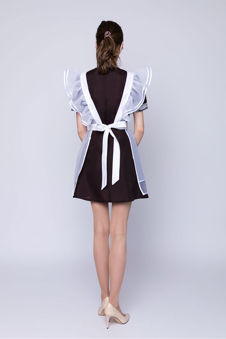 Эта модель комплектуется коричневым (синим, черным) платьем с воротником стойка и фартуком..