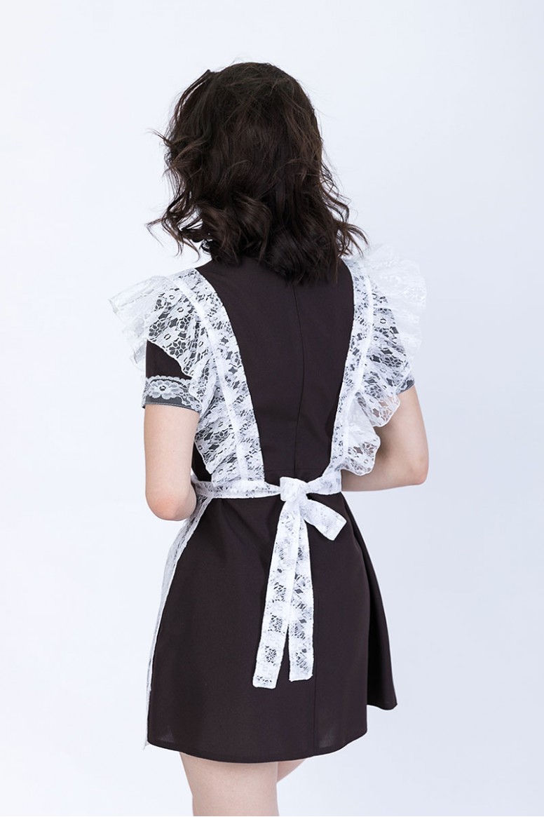Эта модель комплектуется коричневым (синим, черным) платьем с воротником стойка и фартуком..